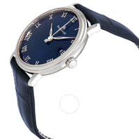 18kt white gold case with a blue alligator leather strap. Fixed 18kt white gold bezel. Stamped blue-lacquered dial with silver-toned leaf-style shape hands and Roman numeral hour markers. Dial Type: Analog. Date display at the 3 o'clock position. Blancpain Calibre 1150 Automatic movement, containing 28 Jewels, composed of 210 parts, bitting at 21600 vph, and has a power reserve of approximately 100 hours. Scratch resistant sapphire crystal. Solid case back. Round case shape, case size: 38 mm, case thickness: 9.15 mm. Tang clasp. Water resistant at 30 meters / 100 feet. Functions: date, hour, minute, second. Villeret Ultra Slim Series. Luxury watch style. Watch label: Swiss Made. Item Variations: 6223C 1529 55A, 6223C.1529.55A, 6223C152955A. Blancpain Villeret Ultra Slim Blue Dial Men's Watch 6223C-1529-55A. GENERAL Box Type: Original Box CASE Case Size: 38 Case Thickness: 9.15 mm Case Material: 18kt White Gold Case Shape: Round Case Back: Solid BAND Band Material: Alligator Leather Band Type: Strap Band Color: Blue Clasp: Tang DIAL Dial Color: Stamped Blue-lacquered Type: Analog Crystal: Scratch Resistant Sapphire Hands: Silver-toned Leaf-style shape Dial Markers: Roman Numeral Bezel: Fixed Bezel Material: 18kt White Gold INFORMATION Brand: Blancpain Series: Villeret Ultra Slim Collection Name: Villeret Ultra Slim Gender: Mens Model: 6223C-1529-55A Watch Label: Swiss Made Movement: Automatic Engine: Blancpain Calibre 1150 Power Reserve: 100 hours FEATURES Water Resistance: 30 meters / 100 feet Calendar: Date display at the 3 o'clock position Functions: Date, Hour, Minute, Second Watch Features: Alligator Leather, Analog, Gold, Leather ADDITIONAL INFO Watch Style: Luxury Warranty: 2 Year Jomashop Warranty UPC Code: 7613297302691 Jomashop Sku: BLANC6223C-1529-55A Item Variation: 6223C 1529 55A, 6223C.1529.55A, 6223C152955A Department: Watches Category: Watches