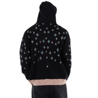 Bluemarble Men's Tops. SKU: HO10KN18B23-BLACK. Color: Black. Bluemarble Jacquard Rhinestoned Hooded Jumper. A cotton-blend jumper featuring a jacquard logo motif and patterned jacquard design, adorned with rhinestone embellishments. It includes a classic hood, long sleeves, ribbed cuffs, and a straight hem. Cotton 60%, Nylon 30%, Virgin Wool 10% GENERAL Color: Black INFORMATION Brand: Bluemarble Gender: Mens Model: HO10KN18B23-BLACK DETAILS Category: Tops Apparel Type: Cardigans & Sweaters ADDITIONAL INFO Jomashop Sku: -HO10KN18B23BLACK Department: Clothing