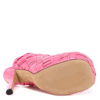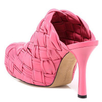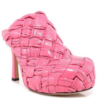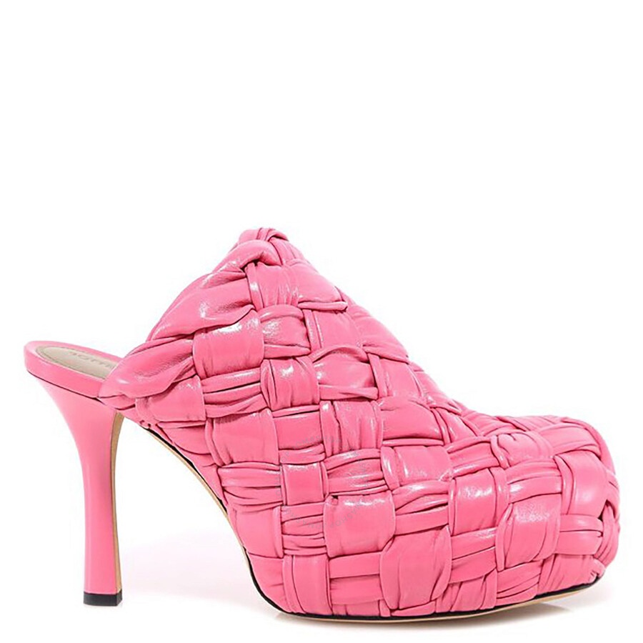 Bottega Veneta Ladies Heels. SKU: 630149 VBT10 5610. Bottega Veneta Ladies BV Bold 105mm Mules. Crafted from leather and designed in the signature Intrecciato design, these mules feature slip-on style, square toe, branded insole and 105mm high heel. Please visit the brand website for sizing information. GENERAL Upper Material: Leather Sole Material: Leather INFORMATION Brand: Bottega Veneta Model: 630149 VBT10 5610 Gender: Womens DETAILS Category: Heels Shoe Style: Mules Shoe Style: Mules Color: Pink Shoe Vamp Style: Slip-on Upper Material: Leather Sole Material: Leather Heel Size: 4.3" ADDITIONAL INFO Jomashop Sku: -630149VBT105610 Department: Shoes