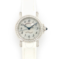 18kt white gold case with a white rubber strap. Fixed 18kt white gold diamond set bezel. Mother of pearl dial with blue-toned hands and Arabic hour markers. Minute markers around the outer rim. Dial Type: Analog. Luminescent hands and markers. Breguet Calibre 537/1 Automatic movement, containing 184 Jewels, bitting at 21600 vph, and has a power reserve of approximately 40 hours. Scratch resistant sapphire crystal. Screw down crown. Round case shape, case size: 30 mm, case thickness: 9.4 mm. Buckle clasp. Water resistant at 50 meters / 165 feet. Functions: hour, minute, second. Marine series. Luxury watch style. Watch label: Swiss Made. Item Variations: 8818BB/59/564 DD00, 8818BB/59/564-DD00, 8818BB/59/564/DD00, 8818BB/59/564DD00. Breguet Marine Mother of Pearl 18kt White Gold Rubber Ladies Watch 8818BB59564DD00. GENERAL Color: Gold / Mother of pearl / White INFORMATION Brand: Breguet Series: Marine Collection Name: Marine Gender: Womens Model: 8818BB/59/564.DD00 Watch Label: Swiss Made Movement: Automatic Engine: Breguet Calibre 537/1 Power Reserve: 40 hours CASE Case Size: 30 mm Case Thickness: 9.4 mm Case Material: 18kt White Gold Case Shape: Round BAND Band Material: Rubber Band Type: Strap Band Color: White Clasp: Buckle DIAL Dial Color: Mother of Pearl Type: Analog Crystal: Scratch Resistant Sapphire Hands: Blue-toned Dial Markers: Arabic Second Markers: Minute Markers around the outer rim Luminiscence: Hands and Markers Bezel: Fixed Bezel Color: 18kt White Gold Bezel Material: Diamond Set Crown: Screw Down FEATURES Water Resistance: 50 meters / 165 feet Functions: Hour, Minute, Second Watch Features: Diamond, Rubber, Gold, Analog ADDITIONAL INFO Watch Style: Luxury Warranty: 2 Year Jomashop Warranty Jomashop Sku: BRG8818BB59564DD00 Item Variation: 8818BB/59/564 DD00, 8818BB/59/564-DD00, 8818BB/59/564/DD00, 8818BB/59/564DD00 Department: Watches Category: Watches