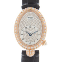 Rose gold-tone 18kt rose gold case with a black alligator band. Fixed rose gold-tone bezel with diamond set 18kt rose gold. Diamond dial with blue hands and Arabic numeral hour markers. Dial Type: Analog. Automatic movement. Scratch resistant sapphire crystal. Oval case shape, case size: 24 mm. Functions: hour, minute. Additional Info: original box, international warranty card, manual (complete accessories). Reine De Naples Series. Luxury watch style. Watch label: Swiss Made. Breguet Reine De Naples Automatic Diamond Unisex Watch 8928BR8D944DD0D3L. INFORMATION Brand: Breguet Series: Reine De Naples Collection Name: Reine De Naples Gender: Womens Model: 8928BR8D944DD0D3L Watch Label: Swiss Made Movement: Automatic CASE Case Size: 24 mm Case Material: 18kt Rose Gold Case Shape: Oval Case Back: Transparent See Through BAND Band Material: Alligator Band Type: Strap Band Color: Black Clasp: Deployment DIAL Dial Color: Diamond Type: Analog Crystal: Scratch Resistant Sapphire Hands: Blue Breguet-style shape Dial Markers: Arabic Numeral Bezel: Fixed Bezel Color: Rose Gold-tone Bezel Material: Diamond Set 18kt Rose Gold FEATURES Functions: Hour, Minute Watch Features: Diamond, Gold, Analog, Alligator Leather ADDITIONAL INFO Watch Style: Luxury Warranty: 2 Year Jomashop Warranty Additional Info: Original Box, Manual (Complete Accessories) Jomashop Sku: BRG8928BR8D944DD0D3L Department: Watches Category: Watches