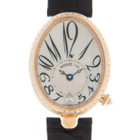 Rose gold-tone 18kt rose gold case with a black leather strap. Fixed rose gold-tone bezel with diamond set 18kt rose gold. White dial with blue hands and Arabic numeral hour markers. Minute scale around the inner rim. Dial Type: Analog. Automatic movement. Scratch resistant sapphire crystal. Oval case shape, case size: 28 mm. Functions: hour, minute. Additional Info: original box, international warranty card, manual (complete accessories). Reine De Naples Series. Luxury watch style. Watch label: Swiss Made. Breguet Reine De Naples Automatic Diamond White Dial Unisex Watch 8918BR58964D00D3L. INFORMATION Brand: Breguet Series: Reine De Naples Collection Name: Reine De Naples Gender: Womens Model: 8918BR58964D00D3L Watch Label: Swiss Made Movement: Automatic CASE Case Size: 28 mm Case Material: 18kt Rose Gold Case Shape: Oval BAND Band Material: Leather Band Type: Strap Band Color: Black DIAL Dial Color: White Type: Analog Crystal: Scratch Resistant Sapphire Hands: Blue Dial Markers: Arabic Numeral Second Markers: Minute Scale around the inner rim Bezel: Fixed Bezel Color: Rose Gold-tone Bezel Material: Diamond Set 18kt Rose Gold FEATURES Functions: Hour, Minute Watch Features: Diamond, Leather, Gold, Analog ADDITIONAL INFO Watch Style: Luxury Warranty: 2 Year Jomashop Warranty Additional Info: Original Box, Manual (Complete Accessories) Jomashop Sku: BRG8918BR58964D00D3L Department: Watches Category: Watches