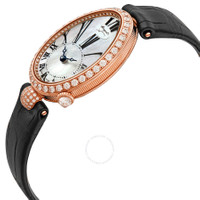 18kt rose gold case with a black leather strap. Fixed 18kt rose gold bezel set with diamonds. White mother of pearl dial with blue Breguet-style hands and Roman numeral hour markers. Minute markers around an inner ring. Dial Type: Analog. Breguet calibre 586 automatic movement, containing 29 Jewels, bitting at 21600 vph, and has a power reserve of approximately 38 hours. Scratch resistant sapphire crystal. Pull / push set with a single briolette cut diamon crown. Transparent case back. Oval case shape. Case dimensions: 33 mm x 24.95 mm. Case thickness: 8.6 mm. Deployment clasp. Water resistant at 30 meters / 100 feet. Functions: hour, minutes. Reine De Naples Series. Luxury watch style. Watch label: Swiss Made. Breguet Reine de Naples Automatic Ladies Watch 8928BR51944DD0D. INFORMATION Brand: Breguet Series: Reine De Naples Collection Name: Reine de Naples Gender: Womens Model: 8928BR51944DD0D Watch Label: Swiss Made Movement: Automatic Engine: Breguet Calibre 586 Power Reserve: 38 hours CASE Case Size: 33 mm x 24.95 mm Case Thickness: 8.6 mm Case Material: 18kt Rose Gold Case Shape: Oval Case Back: Transparent BAND Band Material: Leather Band Type: Strap Band Color: Black Clasp: Deployment DIAL Dial Color: White Mother of Pearl Type: Analog Crystal: Scratch Resistant Sapphire Hands: Blue Breguet-style Dial Markers: Roman Numeral Second Markers: Minute Markers around an inner ring Bezel: Fixed Bezel Color: 18kt Rose Gold Bezel Material: 18kt Rose Gold set with Diamonds Crown: Pull / Push set with a Single Briolette Cut Diamon FEATURES Water Resistance: 30 meters / 100 feet Functions: Hour, Minutes Watch Features: Diamond, Leather, Gold, Analog ADDITIONAL INFO Watch Style: Luxury Warranty: 2 Year Jomashop Warranty Jomashop Sku: BRG8928BR51944DD0D Department: Watches Category: Watches