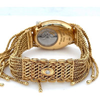 Pre-owned 18kt yellow gold case with a polished 18kt yellow gold bracelet. Fixed 18kt yellow gold bezel. Mother of pearl dial with blue hands and Roman numeral hour markers. Dial Type: Analog. Breguet Calibre 586 Automatic movement, containing 29 Jewels, bitting at 21600 vph, and has a power reserve of approximately 38 hours. Scratch resistant sapphire crystal. Pull / push crown. Transparent case back. Oval case shape, case size: 24.95 mm x 33 mm, case thickness: 8.60 mm. Deployant buckle clasp. Water resistant at 30 meters / 100 feet. Functions: hour, minute. Reine De Naples Series. Luxury watch style. Watch label: Swiss Made. Breguet Reine De Naples Automatic Ladies Watch 8928ba/51/j60.dd0d. GENERAL Year: 2013 Preowned Item Condition: Excellent CASE Case Thickness: 8.60 mm Case Material: 18kt Yellow Gold Case Shape: Oval Case Back: Transparent BAND Band Material: 18kt Yellow Gold Band Type: Bracelet Band Color: Yellow Gold-tone Clasp: Deployant Buckle DIAL Dial Color: Mother of Pearl Type: Analog Crystal: Scratch Resistant Sapphire Hands: Blue Dial Markers: Roman Numeral Second Markers: Minute Scale around the inner rim Bezel: Fixed Bezel Color: Yellow Gold-tone Bezel Material: 18kt Yellow Gold Crown: Pull / Push INFORMATION Brand: Breguet Series: Reine De Naples Collection Name: Reine De Naples Gender: Womens Model: 8928ba/51/j60.dd0d Watch Label: Swiss Made Movement: Automatic Engine: Breguet Calibre 586 Power Reserve: 38 hours FEATURES Water Resistance: 30 meters / 100 feet Functions: Hour, Minute Watch Features: Analog, Gold ADDITIONAL INFO Watch Style: Luxury Warranty: 1 Year Jomashop Warranty Additional Info: WEIGHS 115.8 GRAMS & FITS UP TO 7 INCH WRIST MAX Jomashop Sku: PRE-P-BRG103860 Department: Watches Category: Watches