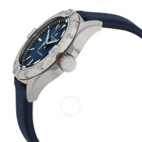 Silver-tone stainless steel case with a blue calfskin leather strap. Uni-directional rotating silver-tone stainless steel bezel. Blue dial with silver-tone hands and index hour markers. Minute markers around the outer rim. Dial Type: Analog. Luminescent hands and markers. Date display at the 3 o'clock position. Breitling Calibre 17 Automatic movement, based upon ETA 2824-2, containing 25 Jewels, bitting at 28800 vph, and has a power reserve of approximately 42 hours. Scratch resistant sapphire crystal. Screw down crown. Solid case back. Round case shape, case size: 42 mm, case thickness: 12.1 mm. Band width: 22 mm. Folding clasp. Water resistant at 300 meters / 1000 feet. Functions: date, hour, minute, second. Avenger Series. Sport watch style. Watch label: Swiss Made. Breitling Avenger Automatic Blue Dial Men's Watch A17328101C1X1. INFORMATION Brand: Breitling Series: Avenger Collection Name: Avenger Gender: Mens Model: A17328101C1X1 Watch Label: Swiss Made Movement: Automatic Engine: Breitling Calibre 17 Power Reserve: 38 hours CASE Case Size: 42 mm Case Thickness: 12.1 mm Case Material: Stainless Steel Case Shape: Round Case Back: Solid BAND Band Material: Calfskin leather Band Type: Strap Band Color: Blue Band Width: 22 mm Clasp: Folding clasp DIAL Dial Color: Blue Type: Analog Crystal: Scratch Resistant Sapphire Hands: Silver-tone Dial Markers: Index Second Markers: Minute Markers around the outer rim Luminiscence: Hands and Markers Bezel: Uni-directional Rotating Bezel Color: Silver-tone Bezel Material: Stainless Steel Crown: Screw Down FEATURES Water Resistance: 300 meters / 1000 feet Calendar: Date display at the 3 o'clock position Functions: Date, Hour, Minute, Second Watch Features: Stainless Steel, Leather, Analog ADDITIONAL INFO Watch Style: Sport Warranty: 2 Year Jomashop Warranty Jomashop Sku: BTA17328101C1X1 Department: Watches Category: Watches