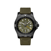 Black titanium case with a green leather strap. Uni-directional rotating black titanium bezel. Green dial with black hands and Arabic numeral hour markers. Minute markers around the outer rim. Dial Type: Analog. Luminescent hands and markers. Date display at the 3 o'clock position. Breitling Calibre 32 Automatic movement, based upon ETA 2893-2, containing 21 Jewels, bitting at 28800 vph, and has a power reserve of approximately 42 hours. Scratch resistant sapphire crystal. Screw down crown. Solid case back. Round case shape, case size: 45 mm, case thickness: 12.3 mm. Tang clasp. Water resistant at 300 meters / 1000 feet. Functions: date, GMT, second time zone, hour, minute, chronometer. Avenger Series. Luxury watch style. Watch label: Swiss Made. Breitling Avenger Automatic Chronometer Green Dial Men's Watch V323952A1L1X1. GENERAL Box Type: Original Box CASE Case Size: 45 Case Thickness: 12.3 mm Case Material: Titanium Case Shape: Round Case Back: Solid BAND Band Material: Leather Band Type: Strap Band Color: Green Clasp: Tang DIAL Dial Color: Green Type: Analog Crystal: Scratch Resistant Sapphire Hands: Black Dial Markers: Arabic Numeral Second Markers: Minute Markers around the outer rim Luminiscence: Hands and Markers Bezel: Uni-directional Rotating Bezel Color: Black Bezel Material: Titanium Crown: Screw Down INFORMATION Brand: Breitling Series: Avenger Collection Name: Avenger Gender: Mens Model: V323952A1L1X1 Watch Label: Swiss Made Movement: Automatic Engine: Breitling Calibre 32 Power Reserve: 42 hours FEATURES Water Resistance: 300 meters / 1000 feet Calendar: Date display at the 3 o'clock position Functions: Date, GMT, Second Time Zone, Hour, Minute, Chronometer Watch Features: Analog, GMT, Chronometer, Leather, Titanium, Time Zone ADDITIONAL INFO Watch Style: Luxury Warranty: 2 Year Jomashop Warranty Jomashop Sku: BTV323952A1L1X1 Department: Watches Category: Watches