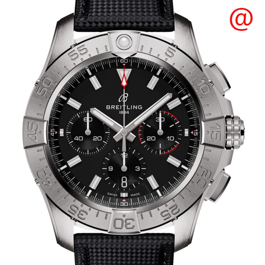 Silver-tone stainless steel case and bracelet. Bi-directional rotating silver-tone stainless steel bezel. Black dial with silver-tone hands and index hour markers. Minute markers around the outer rim. Dial Type: Analog. Luminescent hands and markers. Chronograph - three sub-dials displaying: 60 second, 30 minute and 12 hour. Breitling Calibre 01 Automatic movement, containing 47 Jewels, composed of 346 parts, bitting at 28800 vph, and has a power reserve of approximately 70 hours. Scratch resistant sapphire crystal. Screw down crown. Transparent see through case back. Round case shape, case size: 44 mm, case thickness: 15.2 mm. Folding clasp. Water resistant at 300 meters / 1000 feet. Functions: chronograph, hour, minute, second. Avenger Series. Sport watch style. Watch label: Swiss Made. Breitling Avenger Chronograph Automatic Black Dial Men's Watch AB0147101B1X1. INFORMATION Brand: Breitling Series: Avenger Collection Name: Avenger Gender: Mens Model: AB0147101B1X1 Watch Label: Swiss Made Movement: Automatic Engine: Breitling Calibre 01 Power Reserve: 70 hours CASE Case Size: 44 mm Case Thickness: 15.2 mm Case Material: Stainless Steel Case Shape: Round Case Back: Transparent See Through BAND Band Material: Stainless Steel Band Type: Bracelet Band Color: Silver-tone Clasp: Folding DIAL Dial Color: Black Type: Analog Crystal: Scratch Resistant Sapphire Hands: Silver-tone Dial Markers: Index Second Markers: Minute Markers around the outer rim Sub Dials: Three - 60 Second, 30 Minute and 12 Hour Luminiscence: Hands and Markers Bezel: Bi-directional Rotating Bezel Color: Silver-tone Bezel Material: Stainless Steel Crown: Screw Down FEATURES Water Resistance: 300 meters / 1000 feet Functions: Chronograph, Hour, Minute, Second Watch Features: Chronograph, Stainless Steel, Analog ADDITIONAL INFO Watch Style: Sport Warranty: 2 Year Jomashop Warranty Jomashop Sku: BTAB0147101B1X1 Department: Watches Category: Watches