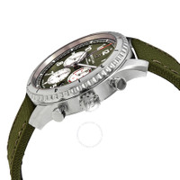 Stainless steel case with a military green textile strap. Bi-directional rotating stainless steel bezel. Military green dial with luminous grey hands and Arabic numeral hour markers. Minute markers around the outer rim. Dial Type: Analog. Luminescent hands and markers. Date display between the 4 and 5 o'clock positions. Chronograph - three white sub-dials displaying: 60 second, 30 minute and 12 hours. Breitling calibre 01 automatic movement, containing 47 Jewels, composed of 346 parts, bitting at 28800 vph, and has a power reserve of approximately 70 hours. Scratch resistant sapphire crystal. Screw locked crown. Transparent case back. Round case shape. Case size: 43 mm. Case thickness: 13.97 mm. Band width: 23 mm / 20 mm. Tang clasp. Water resistant at 100 meters / 330 feet. Functions: chronograph, column wheel, date, hour, minute, second, chronometer. Pilot watch style. Watch label: Swiss Made. Breitling Aviator 8 Curtiss Warhawk Chronograph Automatic Men's Watch AB01192A1L1X2. INFORMATION Brand: Breitling Series: Aviator 8 Curtiss Warhawk Collection Name: Aviator 8 Curtiss Warhawk Gender: Mens Model: AB01192A1L1X2 Watch Label: Swiss Made Movement: Automatic Engine: Breitling Calibre 01 Power Reserve: 70 hours CASE Case Size: 43 mm Case Thickness: 13.97 mm Case Material: Stainless Steel Case Shape: Round Case Back: Transparent BAND Band Material: Textile Band Type: Strap Band Color: Military Green Band Width: 23 mm / 20 mm Clasp: Tang DIAL Dial Color: Military Green Type: Analog Crystal: Scratch Resistant Sapphire Hands: Luminous grey Dial Markers: Arabic Numeral Second Markers: Minute Markers around the outer rim Sub Dials: Three - 60 Second, 30 Minute and 12 Hour Luminiscence: Hands and Markers Bezel: Bi-directional Rotating Bezel Color: Silver-tone Bezel Material: Stainless Steel Crown: Screw Locked FEATURES Water Resistance: 100 meters / 330 feet Calendar: Date display between 4 and 5 o'clock position Functions: Chronograph, Column Wheel, Date, Hour, Minute, Second, Chronometer Watch Features: Chronograph, Stainless Steel, Chronometer, Analog ADDITIONAL INFO Watch Style: Pilot Warranty: 2 Year Jomashop Warranty UPC Code: 842047178614 Jomashop Sku: BTAB01192A1L1X2 Department: Watches Category: Watches