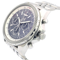 Silver-tone stainless steel case and bracelet. Bi-directional rotating silver-tone stainless steel bezel. Grey dial with silver-tone hands and index hour markers. Minute markers around the outer rim. Dial Type: Analog. Luminescent hands and markers. Date display at the 12 o'clock position. Chronograph - three sub-dials displaying: 60 second, 30 minute and 12 hour. Breitling Calibre 44B Automatic movement, based upon ETA 2892, containing 38 Jewels, bitting at 28800 vph, and has a power reserve of approximately 42 hours. Scratch resistant sapphire crystal. Screw down crown. Solid case back. Round case shape, case size: 49 mm, case thickness: 16.5 mm. Band width: 24 mm, band length: 7 inches. Deployment clasp. Water resistant at 100 meters / 330 feet. Functions: chronograph, big date, hour, minute, small second. Bentley 6.75 Series. Watch label: Swiss Made. Breitling Bentley 6.75 Chronograph Automatic Grey Dial Men's Watch A4436212/F544.990A. CASE Case Size: 49 Case Thickness: 16.5 mm Case Material: Stainless Steel Case Shape: Round Case Back: Solid BAND Band Material: Stainless Steel Band Type: Bracelet Band Color: Silver-tone Band Length: 7 inches Band Width: 24 mm Clasp: Deployment DIAL Dial Color: Grey Type: Analog Crystal: Scratch Resistant Sapphire Hands: Silver-tone Dial Markers: Index Second Markers: Minute Markers around the outer rim Sub Dials: Three - 60 Second, 30 Minute and 12 Hour Luminiscence: Hands and Markers Bezel: Bi-directional Rotating Bezel Color: Silver-tone Bezel Material: Stainless Steel Crown: Screw Down INFORMATION Brand: Breitling Series: Bentley 6.75 Collection Name: Bentley 6.75 Gender: Mens Model: A4436212/F544.990A Watch Label: Swiss Made Movement: Automatic Engine: Breitling Calibre 44B Power Reserve: 42 hours FEATURES Water Resistance: 100 meters / 330 feet Calendar: Date display at the 12 o'clock position Functions: Chronograph, Big Date, Hour, Minute, Small Second Watch Features: Chronograph, Stainless Steel, Analog ADDITIONAL INFO Warranty: 2 Year Jomashop Warranty Jomashop Sku: BTA4436212-F544SS Department: Watches Category: Watches