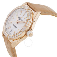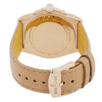 Rose gold-tone 18kt rose gold diamond set case with a beige leather strap. Uni-directional rotating rose gold-tone bezel with diamond set. Beige dial with rose gold-tone hands and index hour markers. Minute scale around the inner rim. Dial Type: Analog. Luminescent hands and markers. Date display at the 6 o'clock position. 18kt rose gold diamond set subdials. Breitling Calibre 10 Automatic movement, based upon ETA 2892-A2, containing 21 Jewels, bitting at 28800 vph, and has a power reserve of approximately 42 hours. Scratch resistant sapphire crystal. Solid case back. Round case shape, case size: 38 mm, case thickness: 11.8 mm. Band width: 20 mm. Tang clasp. Water resistant at 100 meters / 330 feet. Functions: date, hour, minute, second. Chronomat Series. Dress watch style. Watch label: Swiss Made. Breitling Chronomat Automatic Diamond Ladies Watch R17356531G1P1. CASE Case Size: 38 Case Thickness: 11.8 mm Case Material: 18kt Rose Gold Diamond Set Case Shape: Round Case Back: Solid BAND Band Material: Leather Band Type: Strap Band Color: Beige Band Width: 20 mm Clasp: Tang DIAL Dial Color: Beige Type: Analog Crystal: Scratch Resistant Sapphire Hands: Rose Gold-tone Dial Markers: Index Second Markers: Minute Scale around the inner rim Sub Dials: 18kt Rose Gold Diamond Set Luminiscence: Hands and Markers Bezel: Uni-directional Rotating Bezel Color: Rose Gold-tone Bezel Material: Diamond Set INFORMATION Brand: Breitling Series: Chronomat Collection Name: Chronomat Gender: Womens Model: R17356531G1P1 Watch Label: Swiss Made Movement: Automatic Engine: Breitling Calibre 10 Power Reserve: 42 hours FEATURES Water Resistance: 100 meters / 330 feet Calendar: Date display at the 6 o'clock position Functions: Date, Hour, Minute, Second Watch Features: Analog, Gold, Leather, Diamond ADDITIONAL INFO Watch Style: Dress Warranty: 2 Year Jomashop Warranty Jomashop Sku: BTR17356531G1P1 Department: Watches