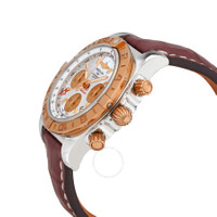 Polished stainless steel case with a burgundy leather strap. Bi-directional rotating bezel. Mother of pearl dial with rose gold hands and index hour markers. Tachymeter. Dial Type: Analog. Luminescent hands and markers. Date display between 4 and 5 o'clock position. Chronograph - three sub-dials displaying: 60 second, 30 minute and 12 hours. Breitling Calibre 04 Automatic movement, based upon Breitling Calibre 01, containing 47 Jewels, bitting at 28000 vph, and has a power reserve of approximately 70 hours. Scratch resistant sapphire crystal. Screw down crown. Round case shape, case size: 44 mm. Tang clasp. Water resistant at 200 meters / 660 feet. Functions: GMT, second time zone, hour, minute, second, date. Chronomat 44 Gmt Series. Luxury watch style. Watch label: Swiss Made. Breitling Chronomat 44 GMT Automatic Men's Watch CB042012/A739.735P.A20BA.1. CASE Case Size: 44 Case Material: Polished Stainless Steel Case Shape: Round Case Back: Solid BAND Band Material: Leather Band Type: Strap Band Color: Burgundy Clasp: Tang DIAL Dial Color: Mother of Pearl Type: Analog Crystal: Scratch Resistant Sapphire Hands: Rose Gold Dial Markers: Index Second Markers: Tachymeter Sub Dials: Three - 60 Second, 30 Minute and 12 Hours Luminiscence: Hands and Markers Bezel: Bi-directional Rotating Crown: Screw Down INFORMATION Brand: Breitling Series: Chronomat 44 Gmt Collection Name: Chronomat 44 GMT Gender: Mens Model: CB042012/A739.735P.A20BA.1 Watch Label: Swiss Made Movement: Automatic Engine: Breitling Calibre 04 Power Reserve: 70 hours FEATURES Water Resistance: 200 meters / 660 feet Calendar: Date display between 4 and 5 o'clock position Functions: GMT, Second Time Zone, Hour, Minute, Second, Date Watch Features: Analog, GMT, Gold, Leather, Stainless Steel, Chronograph, Time Zone ADDITIONAL INFO Watch Style: Luxury Warranty: 2 Year Jomashop Warranty Jomashop Sku: BTCB042012-A739BURCT Department: Watches Category: Watches