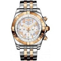 Stainless steel and rose gold case and bracelet. Uni-directional rotating rose gold bezel. Mother of pearl dial with rose gold-tone hands and Roman numeral hour markers. Minute markers around the outer rim. Dial Type: Analog. Date display between 4 and 5 o'clock position. Chronograph - three sub-dials displaying: 60 second, 30 minute and 12 hours. Automatic movement. Scratch resistant sapphire crystal. Screw down crown. Round case shape, case size: 44 mm, case thickness: 16.95 mm. Folding clasp. Water resistant at 500 meters / 1650 feet. Functions: chronograph, date, hour, minute, second. Chronomat Series. Luxury watch style. Watch label: Swiss Made. Breitling Chronomat Automatic Men's Two Tone Watch CB011012/A693.375C. CASE Case Size: 44 Case Thickness: 16.95 mm Case Material: Stainless Steel and Rose Gold Case Shape: Round BAND Band Material: Stainless Steel and Rose Gold Band Type: Bracelet Clasp: Folding DIAL Dial Color: Mother of Pearl Type: Analog Crystal: Scratch Resistant Sapphire Hands: Rose Gold-tone Dial Markers: Roman Numeral Second Markers: Minute Markers around the outer rim Sub Dials: Three - 60 Second, 30 Minute and 12 Hours Bezel: Uni-directional Rotating Bezel Color: Rose Gold Crown: Screw Down INFORMATION Brand: Breitling Series: Chronomat Collection Name: Chronomat Gender: Mens Model: CB011012/A693.375C Watch Label: Swiss Made Movement: Automatic FEATURES Water Resistance: 500 meters / 1650 feet Calendar: Date display between 4 and 5 o'clock position Functions: Chronograph, Date, Hour, Minute, Second Watch Features: Analog, Gold, Stainless Steel, Chronograph ADDITIONAL INFO Watch Style: Luxury Warranty: 2 Year Jomashop Warranty Jomashop Sku: BTCB011012-A693TT Department: Watches Category: Watches