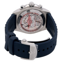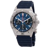 Silver-tone stainless steel & platinum case with a blue rubber strap. Uni-directional rotating silver-tone stainless steel & platinum bezel. Blue dial with silver-tone hands and index hour markers. Minute markers around the outer rim. Dial Type: Analog. Luminescent hands and markers. Date display at the 6 o'clock position. Chronograph - three sub-dials displaying: 60 second, 30 minute and 1/10th of a second. Breitling Calibre 01 Automatic movement, containing 47 Jewels, composed of 346 parts, bitting at 28800 vph, and has a power reserve of approximately 70 hours. Scratch resistant sapphire crystal. Screw down crown. Transparent see through case back. Round case shape, case size: 42 mm, case thickness: 15.1 mm. Band width: 22 mm. Folding clasp. Water resistant at 200 meters / 660 feet. Functions: chronograph, date, hour, minute, second. B01 Series. Sport watch style. Watch label: Swiss Made. Breitling B01 Chronograph Automatic Blue Dial Men's Watch AB0134101C1S1. CASE Case Size: 42 Case Thickness: 15.1 mm Case Material: Stainless Steel & Platinum Case Shape: Round Case Back: Transparent See Through BAND Band Material: Rubber Band Type: Strap Band Color: Blue Band Width: 22 mm Clasp: Folding DIAL Dial Color: Blue Type: Analog Crystal: Scratch Resistant Sapphire Hands: Silver-tone Dial Markers: Index Second Markers: Minute Markers around the outer rim Sub Dials: Three - 60 Second, 30 Minute and 1/10th of a Second Luminiscence: Hands and Markers Bezel: Uni-directional Rotating Bezel Color: Silver-tone Bezel Material: Stainless Steel & Platinum Crown: Screw Down INFORMATION Brand: Breitling Series: Chronomat Collection Name: Chronomat Gender: Mens Model: AB0134101C1S1 Watch Label: Swiss Made Movement: Automatic Engine: Breitling Calibre 01 Power Reserve: 70 hours FEATURES Water Resistance: 200 meters / 660 feet Calendar: Date display at the 6 o'clock position Functions: Chronograph, Date, Hour, Minute, Second Watch Features: Analog, Platinum, Rubber, Stainless Steel, Chronograph ADDITIONAL INFO Watch Style: Sport Warranty: 2 Year Jomashop Warranty Jomashop Sku: BTAB0134101C1S1 Department: Watches Category: Watches