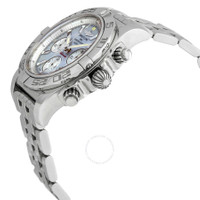 Silver-tone stainless steel case and bracelet. Uni-directional rotating silver-tone stainless steel bezel. Blue dial with silver-tone hands and index hour markers. Minute markers. 1/100th seconds markers. Tachymeter markings around the outer rim. Dial Type: Analog. Luminescent hands and markers. Date display between the 4 and 5 o'clock positions. Chronograph - three sub-dials displaying: 60 second, 30 minute and 12 hour. Breitling Calibre 01 Automatic movement, containing 47 Jewels, composed of 346 parts, bitting at 28800 vph, and has a power reserve of approximately 70 hours. Scratch resistant sapphire crystal. Screw down crown. Solid case back. Round case shape, case size: 44 mm, case thickness: 16.95 mm. Tang clasp. Water resistant at 500 meters / 1650 feet. Functions: chronograph, tachymeter, date, hour, minute, second. Chronomat Series. Luxury watch style. Watch label: Swiss Made. Breitling Chronomat Chronograph Automatic Blue Dial Men's Watch AB011012/G685.375A. GENERAL Box Type: Original Box CASE Case Size: 44 Case Thickness: 16.95 mm Case Material: Stainless Steel Case Shape: Round Case Back: Solid BAND Band Material: Stainless Steel Band Type: Bracelet Band Color: Silver-tone Clasp: Tang DIAL Dial Color: Blue Type: Analog Crystal: Scratch Resistant Sapphire Hands: Silver-tone Dial Markers: Index Second Markers: Minute Markers. 1/100th Seconds Markers. Tachymeter Markings around the outer rim Sub Dials: Three - 60 Second, 30 Minute and 12 Hour Luminiscence: Hands and Markers Bezel: Uni-directional Rotating Bezel Color: Silver-tone Bezel Material: Stainless Steel Crown: Screw Down INFORMATION Brand: Breitling Series: Chronomat Collection Name: Chronomat Gender: Mens Model: AB011012/G685.375A Watch Label: Swiss Made Movement: Automatic Engine: Breitling Calibre 01 Power Reserve: 70 hours FEATURES Water Resistance: 500 meters / 1650 feet Calendar: Date display between the 4 and 5 o'clock positions Functions: Chronograph, Tachymeter, Date, Hour, Minute, Second Watch Features: Analog, Stainless Steel, Chronograph ADDITIONAL INFO Watch Style: Luxury Warranty: 2 Year Jomashop Warranty Jomashop Sku: BTAB011012G685375A Department: Watches Category: Watches
