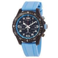 Black breitlight case with a blue rubber strap. Bi-directional rotating black bezel. Black dial with silver-tone hands and index-Arabic numeral hour markers. Minute markers around the outer rim. Dial Type: Analog. Luminescent hands and markers. Date display between 4 and 5 o'clock position. Chronograph - three sub-dials displaying: 60 second, 30 minute and 1/10th of a second. Breitling Calibre 83 quartz movement. Scratch resistant sapphire crystal. Screw down crown. Solid case back. Round case shape, case size: 38 mm, case thickness: 12.1 mm. Band width: 18 mm. Tang clasp. Water resistant at 100 meters / 330 feet. Functions: chronograph, date, hour, minute, second. Endurance Pro Series. Sport watch style. Watch label: Swiss Made. Breitling Endurance Pro Chronograph Quartz Black Dial Unisex Watch X83310281B1S1. GENERAL Box Type: Original Box CASE Case Diameter: 38 mm Case Thickness: 12.1 mm Case Material: Breitlight Case Shape: Round Case Back: Solid BAND Band Material: Rubber Band Type: Strap Band Color: Blue Band Width: 18 mm Clasp: Tang DIAL Dial Color: Black Type: Analog Crystal: Scratch Resistant Sapphire Hands: Silver-tone Dial Markers: Index-Arabic Numeral Second Markers: Minute Markers around the outer rim Sub Dials: Three - 60 Second, 30 Minute and 1/10th of a Second Luminiscence: Hands and Markers Bezel: Bi-directional Rotating Bezel Color: Black Crown: Screw Down INFORMATION Brand: Breitling Series: Endurance Pro Collection Name: Endurance Pro Gender: Mens Model: X83310281B1S1 Watch Label: Swiss Made Movement: Quartz Engine: Breitling Calibre 83 FEATURES Water Resistance: 100 meters / 330 feet Calendar: Date display between 4 and 5 o'clock position Functions: Chronograph, Date, Hour, Minute, Second Watch Features: Analog, Rubber, Chronograph ADDITIONAL INFO Watch Style: Sport Warranty: 2 Year Jomashop Warranty Jomashop Sku: BTX83310281B1S1 Department: Watches Category: Watches