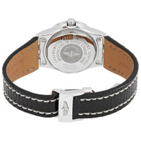 Silver-tone stainless steel case with a black lizard leather strap. Black dial with silver-tone hands and Roman numeral hour markers. Dial Type: Analog. Luminescent hands and markers. Date display at the 3 o'clock position. Quartz movement. Scratch resistant sapphire crystal. Solid case back. Round case shape, case size: 30 mm. Tang clasp. Water resistant at 100 meters / 330 feet. Functions: date, hour, minute, second. Galactic 30 Series. Watch label: Swiss Made. Breitling Galactic 30 Quartz Black Dial Ladies Watch A71340L2/B950.168Z.A14D.1. INFORMATION Brand: Breitling Series: Galactic 30 Collection Name: Galactic 30 Gender: Womens Model: A71340L2/B950.168Z.A14D.1 Watch Label: Swiss Made Movement: Quartz CASE Case Size: 30 mm Case Material: Stainless Steel Case Shape: Round Case Back: Solid BAND Band Material: Lizard Leather Band Type: Strap Band Color: Black Clasp: Tang DIAL Dial Color: Black Type: Analog Crystal: Scratch Resistant Sapphire Hands: Silver-tone Dial Markers: Roman Numeral Luminiscence: Hands and Markers FEATURES Water Resistance: 100 meters / 330 feet Calendar: Date display at the 3 o'clock position Functions: Date, Hour, Minute, Second Watch Features: Stainless Steel, Leather, Analog ADDITIONAL INFO Warranty: 2 Year Jomashop Warranty Jomashop Sku: BTA71340L2-B950BKLZT Department: Watches Category: Watches