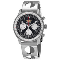 Silver-tone stainless steel case and bracelet. Bi-directional rotating slide rule silver-tone stainless steel bezel. Black dial with silver-tone hands and index hour markers. Minute markers. Slide rule markers around the outer rim. Dial Type: Analog. Luminescent hands and markers. Date display between 4 and 5 o'clock position. Chronograph - three sub-dials displaying: 60 second, 30 minute and 12 hour. Breitling Calibre 01 Automatic movement, containing 47 Jewels, composed of 346 parts, bitting at 28800 vph, and has a power reserve of approximately 70 hours. Scratch resistant sapphire crystal. Non screw-locked - two gaskets crown. Solid case back. Round case shape, case size: 43.7 mm, case thickness: 17.1 mm. Band width: 22 mm, band length: 7 inches. Deployment with push button release clasp. Water resistant at 30 meters / 100 feet. Functions: chronograph, chronometer, date, hour, minute, second, tachymeter. Navitimer 01 Series. Luxury watch style. Watch label: Swiss Made. Breitling Navitimer 01 Chronograph Automatic Chronometer Black Dial Men's Watch AB012012/BB01.222A. CASE Case Size: 43 Case Thickness: 17.1 mm Case Material: Stainless Steel Case Shape: Round Case Back: Solid BAND Band Material: Stainless Steel Band Type: Bracelet Band Color: Silver-tone Band Length: 7 inches Band Width: 22 mm Clasp: Deployment with Push Button Release DIAL Dial Color: Black Type: Analog Crystal: Scratch Resistant Sapphire Hands: Silver-tone Dial Markers: Index Second Markers: Minute Markers. Slide Rule Markers around the outer rim Sub Dials: Three - 60 Second, 30 Minute and 12 Hour Luminiscence: Hands and Markers Bezel: Bi-directional Rotating Slide Rule Bezel Color: Silver-tone Bezel Material: Stainless Steel Crown: Non Screw-locked - Two Gaskets INFORMATION Brand: Breitling Series: Navitimer 01 Collection Name: Navitimer 01 Gender: Mens Model: AB012012/BB01.222A Watch Label: Swiss Made Movement: Automatic Engine: Breitling Calibre 01 Power Reserve: 70 hours FEATURES Water Resistance: 30 meters / 100 feet Calendar: Date display between 4 and 5 o'clock position Functions: Chronograph, Chronometer, Date, Hour, Minute, Second, Tachymeter Watch Features: Analog, Chronograph, Stainless Steel, Chronometer ADDITIONAL INFO Watch Style: Luxury Warranty: 2 Year Jomashop Warranty Jomashop Sku: BTAB012012BB01222A Department: Watches Category: Watches