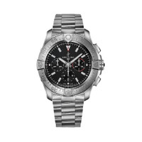 Titanium case with a black titanium bracelet. Uni-directional rotating titanium bezel. Black dial with index hour markers. Minute markers around the outer rim. Dial Type: Analog. Luminescent hands and markers. Date display at the 6 o'clock position. Chronograph - three sub-dials displaying: 60 second, 30 minute and 12 hour. Breitling Calibre 01 Automatic movement, containing 47 Jewels, composed of 346 parts, bitting at 28800 vph, and has a power reserve of approximately 70 hours. Scratch resistant sapphire crystal. Screw down crown. Transparent case back. Round case shape, case size: 46 mm, case thickness: 15.2 mm. Band width: 24/20 mm. Folding clasp. Water resistant at 300 meters / 1000 feet. Functions: chronograph, column wheel, date, hour, minute, second. Super Avenger Series. Sport watch style. Watch label: Swiss Made. Breitling Super Avenger Chronograph Automatic Black Dial Men's Watch EB0148101B1E1. GENERAL Box Type: Original Box CASE Case Diameter: 46 Case Thickness: 15.2 mm Case Material: Titanium Case Shape: Round Case Back: Transparent BAND Band Material: Titanium Band Type: Bracelet Band Color: Black Band Width: 24/20 mm Clasp: Folding DIAL Dial Color: Black Type: Analog Crystal: Scratch Resistant Sapphire Dial Markers: Index Second Markers: Minute Markers around the outer rim Sub Dials: Three - 60 Second, 30 Minute and 12 Hour Luminiscence: Hands and Markers Bezel: Uni-directional Rotating Bezel Material: Titanium Crown: Screw Down INFORMATION Brand: Breitling Series: Avenger Collection Name: Super Avenger Gender: Mens Model: EB0148101B1E1 Watch Label: Swiss Made Movement: Automatic Engine: Breitling Calibre 01 Power Reserve: 70 hours FEATURES Water Resistance: 300 meters / 1000 feet Calendar: Date display at the 6 o'clock position Functions: Chronograph, Column Wheel, Date, Hour, Minute, Second Watch Features: Analog, Titanium, Chronograph ADDITIONAL INFO Watch Style: Sport Warranty: 2 Year Jomashop Warranty Jomashop Sku: BTEB0148101B1E1 Department: Watches