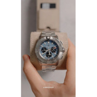 Silver-tone titanium case and bracelet. Uni-directional rotating silver-tone titanium bezel. Blue dial with silver-tone hands and index hour markers. Minute markers around the outer rim. Dial Type: Analog. Luminescent hands and markers. Date display at the 6 o'clock position. Chronograph - three sub-dials displaying: 60 second, 30 minute and 12 hour. Breitling Calibre 01 Automatic movement, containing 47 Jewels, composed of 346 parts, bitting at 28800 vph, and has a power reserve of approximately 70 hours. Scratch resistant sapphire crystal. Screw down crown. Transparent case back. Round case shape, case size: 46 mm, case thickness: 15.2 mm. Band width: 24/20 mm. Folding clasp. Water resistant at 300 meters / 1000 feet. Functions: chronograph, column wheel, date, hour, minute, second. Super Avenger Series. Sport watch style. Watch label: Swiss Made. Breitling Super Avenger B01 Chronograph Automatic Blue Dial Men's Watch EB0148101C1E1. CASE Case Size: 46 Case Thickness: 15.2 mm Case Material: Titanium Case Shape: Round Case Back: Transparent BAND Band Material: Titanium Band Type: Bracelet Band Color: Silver-tone Band Width: 24/20 mm Clasp: Folding DIAL Dial Color: Blue Type: Analog Crystal: Scratch Resistant Sapphire Hands: Silver-tone Dial Markers: Index Second Markers: Minute Markers around the outer rim Sub Dials: Three - 60 Second, 30 Minute and 12 Hour Luminiscence: Hands and Markers Bezel: Uni-directional Rotating Bezel Color: Silver-tone Bezel Material: Titanium Crown: Screw Down INFORMATION Brand: Breitling Series: Avenger Collection Name: Super Avenger Gender: Mens Model: EB0148101C1E1 Watch Label: Swiss Made Movement: Automatic Engine: Breitling Calibre 01 Power Reserve: 70 hours FEATURES Water Resistance: 300 meters / 1000 feet Calendar: Date display at the 6 o'clock position Functions: Chronograph, Column Wheel, Date, Hour, Minute, Second Watch Features: Chronograph, Titanium, Analog ADDITIONAL INFO Watch Style: Sport Warranty: 2 Year Jomashop Warranty Jomashop Sku: BTEB0148101C1E1 Department: Watches