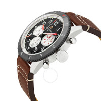 Stainless steel case with a brown leather strap. Bi-directional rotating black-plated bezel. Black dial with luminous silver-tone hands and Arabic numeral hour markers. Minute markers. 24 hour markers around the outer rim. Dial Type: Analog. Luminescent hands and markers. Date display at the 6 o'clock position. Chronograph - three white sub-dials displaying: 60 second, 30 minute and 12 hour. Breitling calibre 04 automatic movement, based upon Breitling calibre 01, containing 47 Jewels, bitting at 28000 vph, and has a power reserve of approximately 70 hours. Scratch resistant sapphire crystal. Screw locked crown. Transparent case back. Round case shape. Case size: 46 mm. Case thickness: 15.9 mm. Band width: 24 mm / 20 mm. Fold over clasp. Water resistant at 100 meters / 330 feet. Functions: chronograph, date, GMT, second time zone, hour, minute, second, chronometer. Super Avi Series. Casual watch style. Watch label: Swiss Made. Breitling Super AVI Chronograph Automatic Chronometer Black Dial Men's Watch YB04451A1B1X1. INFORMATION Brand: Breitling Series: Super Avi Collection Name: Super AVI Gender: Mens Model: YB04451A1B1X1 Watch Label: Swiss Made Movement: Automatic Engine: Breitling Calibre 04 Power Reserve: 70 hours CASE Case Size: 46 mm Case Thickness: 15.9 mm Case Material: Stainless Steel Case Shape: Round Case Back: Transparent BAND Band Material: Leather Band Type: Strap Band Color: Brown Band Width: 24 mm / 20 mm Clasp: Fold Over DIAL Dial Color: Black Type: Analog Crystal: Scratch Resistant Sapphire Hands: Luminous Silver-tone Dial Markers: Arabic Numeral Second Markers: Minute Markers. 24 Hour Markers around the outer rim Sub Dials: Three - 60 Second, 30 Minute and 12 Hour Luminiscence: Hands and Markers Bezel: Bi-directional Rotating Bezel Color: Black-plated Bezel Material: Stainless Steel Crown: Screw Locked FEATURES Water Resistance: 100 meters / 330 feet Calendar: Date display at the 6 o'clock position Functions: Chronograph, Date, GMT, Second Time Zone, Hour, Minute, Second, Chronometer Watch Features: Analog, GMT, Chronometer, Leather, Stainless Steel, Chronograph, Time Zone ADDITIONAL INFO Watch Style: Casual Warranty: 2 Year Jomashop Warranty Jomashop Sku: BTYB04451A1B1X1 Department: Watches Category: Watches