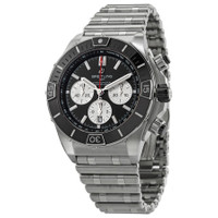 Stainless steel case with a stainless steel bracelet. Uni-directional rotating stainless steel bezel with an inlaid black ceramic ring. Black dial with luminous silver-tone hands and index hour markers. Minute markers. 1/100th second markers. Tachymeter markings around the outer rim. Dial Type: Analog. Luminescent hands and markers. Date display above the 6 o'clock position. Chronograph - three sub-dials displaying: 60 second, 30 minute and 12 hour. Breitling Calibre 01 Automatic movement, containing 47 Jewels, composed of 346 parts, bitting at 28800 vph, and has a power reserve of approximately 70 hours. Scratch resistant sapphire crystal. Screw locked crown. Transparent case back. Round case shape. Case size: 44 mm. Case thickness: 14.4 mm. Band width: 22 mm. Fold over clasp with a push button release. Water resistant at 200 meters / 660 feet. Functions: chronograph, column wheel, date, hour, minute, second, chronometer. Additional Info: original box, manual (complete accessories). Super Chronomat B01 Series. Luxury watch style. Watch label: Swiss Made. Breitling Super Chronomat B01 Chronograph Automatic Chronometer Black Dial Men's Watch AB0136251B1A1. GENERAL Box Type: Original Box Closure Type: AB0136251B1A1 CASE Case Size: 44 Case Thickness: 14.4 mm Case Material: Stainless Steel Case Shape: Round Case Back: Transparent BAND Band Material: Stainless Steel Band Type: Bracelet Band Color: Silver-tone Band Width: 22 mm Clasp: Fold Over with Push Button Release DIAL Dial Color: Black Type: Analog Crystal: Scratch Resistant Sapphire Hands: Luminous Silver-tone Dial Markers: Index Second Markers: Minute Markers. 1/100th Second Markers. Tachymeter Markings around the outer rim Sub Dials: Three - 60 Second, 30 Minute and 12 Hour Luminiscence: Hands and Markers Bezel: Uni-directional Rotating Bezel Color: Silver-tone Bezel Material: Stainless Steel with an inlaid Black Ceramic Ring Crown: Screw Locked INFORMATION Brand: Breitling Series: Chronomat Collection Name: Super Chronomat B01 Gender: Mens Model: AB0136251B1A1 Watch Label: Swiss Made Movement: Automatic Engine: Breitling Calibre 01 Power Reserve: 70 hours FEATURES Water Resistance: 200 meters / 660 feet Calendar: Date display above the 6 o'clock position Functions: Chronograph, Column Wheel, Date, Hour, Minute, Second, Chronometer Watch Features: Analog, Chronometer, Ceramic, Stainless Steel, Chronograph ADDITIONAL INFO Watch Style: Luxury Warranty: 2 Year Jomashop Warranty Additional Info: Original Box, Manual (Complete Accessories) Jomashop Sku: BTAB0136251B1A1 Department: Watches Category: Watches