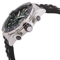 Silver-tone stainless steel case with a black rubber strap. Uni-directional rotating black stainless steel bezel. Dark green dial with silver-tone hands and index hour markers. Tachymeter scale around the outer rim. Dial Type: Analog. Luminescent hands and markers. Chronograph - three sub-dials displaying: 60 second, 30 minute and 12 hour. Breitling Calibre 01 Automatic movement, containing 47 Jewels, composed of 346 parts, bitting at 28800 vph, and has a power reserve of approximately 70 hours. Scratch resistant sapphire crystal. Transparent see through case back. Round case shape, case size: 44 mm, case thickness: 14.4 mm. Band width: 22 mm. Fold over clasp. Water resistant at 200 meters / 660 feet. Functions: chronograph, column wheel, date, hour, minute, second, chronometer. Super Chronomat B01 Series. Sport watch style. Watch label: Swiss Made. Breitling Super Chronomat B01 Chronograph Automatic Chronometer Men's Watch AB0136251L1S1. CASE Case Size: 44 Case Thickness: 14.4 mm Case Material: Stainless Steel Case Shape: Round Case Back: Transparent See Through BAND Band Material: Rubber Band Type: Strap Band Color: Black Band Width: 22 mm Clasp: Fold Over DIAL Dial Color: Dark Green Type: Analog Crystal: Scratch Resistant Sapphire Hands: Silver-tone Dial Markers: Index Second Markers: Tachymeter Scale around the outer rim Sub Dials: Three - 60 Second, 30 Minute and 12 Hour Luminiscence: Hands and Markers Bezel: Uni-directional Rotating Bezel Color: Black Bezel Material: Stainless Steel INFORMATION Brand: Breitling Series: Chronomat Collection Name: Super Chronomat B01 Gender: Mens Model: AB0136251L1S1 Watch Label: Swiss Made Movement: Automatic Engine: Breitling Calibre 01 Power Reserve: 70 hours FEATURES Water Resistance: 200 meters / 660 feet Functions: Chronograph, Column Wheel, Date, Hour, Minute, Second, Chronometer Watch Features: Analog, Chronometer, Rubber, Stainless Steel, Chronograph ADDITIONAL INFO Watch Style: Sport Warranty: 2 Year Jomashop Warranty Jomashop Sku: BTAB0136251L1S1 Department: Watches Category: Watches
