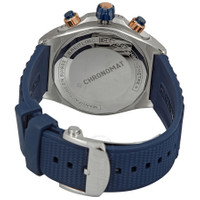 Stainless steel case with a blue rubber strap. Uni-directional rotating 18kt rose gold bezel with an inlaid blue ceramic ring. Blue dial with luminous rose gold-tone hands and index hour markers. Minute markers. 1/100th second markers. Tachymeter markers around the outer rim. Dial Type: Analog. Luminescent hands and markers. Perpetual calendar. Four sub-dials displaying: 60 second/date, 30 minute/month, 12 hour/day of the week and moonphase. Breitling Calibre 19 Automatic movement, based upon ETA 2892-A2, containing 38 Jewels, bitting at 28800 vph, and has a power reserve of approximately 42 hours. Scratch resistant sapphire crystal. Screw locked crown. Solid case back. Round case shape. Case size: 44 mm. Case thickness: 14.5 mm. Band width: 22 mm. Fold over clasp with a safety release. Water resistant at 100 meters / 330 feet. Functions: perpetual calendar, leap year, moon phase, chronograph, month, date, day, hour, minute, small second, chronometer. Super Chronomat Series. Luxury watch style. Watch label: Swiss Made. Breitling Super Chronomat Four-Year Calender Chronograph Automatic Blue Dial Men's Watch U19320161C1S1. GENERAL Box Type: Original Box Closure Type: U19320161C1S1 CASE Case Size: 44 Case Thickness: 14.5 mm Case Material: Stainless Steel Case Shape: Round Case Back: Solid BAND Band Material: Rubber Band Type: Strap Band Color: Blue Band Width: 22 mm Clasp: Fold Over with Safety Release DIAL Dial Color: Blue Type: Analog Crystal: Scratch Resistant Sapphire Hands: Luminous Rose Gold-tone Dial Markers: Index Second Markers: Minute Markers. 1/100th Second Markers. Tachymeter Markers around the outer rim Sub Dials: Four - 60 Second/Date, 30 Minute/Month, 12 Hour/Day of the Week and Moonphase Luminiscence: Hands and Markers Bezel: Uni-directional Rotating Bezel Material: 18kt Rose Gold with an inlaid Blue Ceramic Ring Crown: Screw Locked INFORMATION Brand: Breitling Series: Chronomat Collection Name: Super Chronomat Gender: Mens Model: U19320161C1S1 Watch Label: Swiss Made Movement: Automatic Engine: Breitling Calibre 19 Power Reserve: 42 hours FEATURES Water Resistance: 100 meters / 330 feet Calendar: Perpetual Calendar Functions: Perpetual Calendar, Leap Year, Moon Phase, Chronograph, Month, Date, Day, Hour, Minute, Small Second, Chronometer Watch Features: Analog, Leap Year Indicator, Chronometer, Month, Perpetual, Ceramic, Gold, Rubber, Stainless Steel, Moon Phase, Chronograph ADDITIONAL INFO Watch Style: Luxury Warranty: 2 Year Jomashop Warranty Jomashop Sku: BTU19320161C1S1 Department: Watches Category: Watches