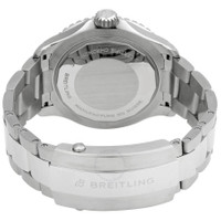 Silver-tone stainless steel case and bracelet. Uni-directional rotating black stainless steel bezel. Black dial with silver-tone hands and index hour markers. Minute markers around the outer rim. Dial Type: Analog. Luminescent hands and markers. Breitling Calibre 17 Automatic movement, based upon ETA 2824-2, containing 25 Jewels, bitting at 28800 vph, and has a power reserve of approximately 42 hours. Scratch resistant sapphire crystal. Screw down crown. Solid case back. Round case shape, case size: 44 mm. Deployment with push button release clasp. Water resistant at 300 meters / 1000 feet. Functions: hour, minute, second, chronometer. Additional Info: original box, international warranty card, manual (complete accessories). Superocean Series. Luxury watch style. Watch label: Swiss Made. Breitling Superocean Automatic Chronometer Black Dial Men's Watch A17376211B1A1. INFORMATION Brand: Breitling Series: Superocean Collection Name: Superocean Gender: Mens Model: A17376211B1A1 Watch Label: Swiss Made Movement: Automatic Engine: Breitling Calibre 17 Power Reserve: 42 hours CASE Case Size: 44 mm Case Material: Stainless Steel Case Shape: Round Case Back: Solid BAND Band Material: Stainless Steel Band Type: Bracelet Band Color: Silver-tone Clasp: Deployment with Push Button Release DIAL Dial Color: Black Type: Analog Crystal: Scratch Resistant Sapphire Hands: Silver-tone Dial Markers: Index Second Markers: Minute Markers around the outer rim Luminiscence: Hands and Markers Bezel: Uni-directional Rotating Bezel Color: Black Bezel Material: Stainless Steel Crown: Screw Down FEATURES Water Resistance: 300 meters / 1000 feet Functions: Hour, Minute, Second, Chronometer Watch Features: Stainless Steel, Chronometer, Analog ADDITIONAL INFO Watch Style: Luxury Warranty: 2 Year Jomashop Warranty Additional Info: Original Box, International Warranty Card, Manual (Complete Accessories) Jomashop Sku: BTA17376211B1A1 Department: Watches Category: Watches