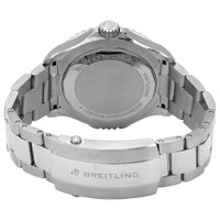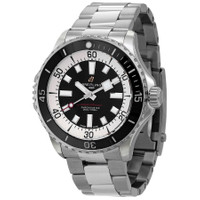 Silver-tone stainless steel case and bracelet. Bi-directional rotating black stainless steel bezel. Black dial with silver-tone hands and index hour markers. Minute markers around the outer rim. Dial Type: Analog. Luminescent hands and markers. Breitling Calibre 17 Automatic movement, based upon ETA 2824-2, containing 25 Jewels, bitting at 28800 vph, and has a power reserve of approximately 42 hours. Scratch resistant sapphire crystal. Screw down crown. Round case shape, case size: 46 mm. Fold over clasp with a safety release. Water resistant at 300 meters / 1000 feet. Functions: hour, minute, second, chronometer. Additional Info: original box, international warranty card, manual (complete accessories). Superocean Series. Dive watch style. Watch label: Swiss Made. Breitling Superocean Automatic Chronometer Black Dial Men's Watch A17378211B1A1. INFORMATION Brand: Breitling Series: Superocean Collection Name: Superocean Gender: Mens Model: A17378211B1A1 Watch Label: Swiss Made Movement: Automatic Engine: Breitling Calibre 17 Power Reserve: 42 hours CASE Case Size: 46 mm Case Material: Stainless Steel Case Shape: Round BAND Band Material: Stainless Steel Band Type: Bracelet Band Color: Silver-tone Clasp: Fold Over with Safety Release DIAL Dial Color: Black Type: Analog Crystal: Scratch Resistant Sapphire Hands: Silver-tone Dial Markers: Index Second Markers: Minute Markers around the outer rim Luminiscence: Hands and Markers Bezel: Bi-directional Rotating Bezel Color: Black Bezel Material: Stainless Steel Crown: Screw Down FEATURES Water Resistance: 300 meters / 1000 feet Functions: Hour, Minute, Second, Chronometer Watch Features: Stainless Steel, Chronometer, Analog ADDITIONAL INFO Watch Style: Dive Warranty: 2 Year Jomashop Warranty Additional Info: Original Box, International Warranty Card, Manual (Complete Accessories) Jomashop Sku: BTA17378211B1A1 Department: Watches Category: Watches