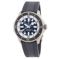 Titanium case with a anthracite rubber strap. Bi-directional rotating black ceramic bezel. Camouflage dial with silver-tone hands and index hour markers. Minute markers around the outer rim. Dial Type: Analog. Luminescent hands and markers. Breitling Calibre 10 Automatic movement, based upon ETA 2892-A2, containing 21 Jewels, bitting at 28800 vph, and has a power reserve of approximately 42 hours. Scratch resistant sapphire crystal. Screw down crown. Solid case back. Round case shape, case size: 46 mm. Folding clasp. Water resistant at 1000 meters / 3300 feet. Functions: hour, minute, second. Superocean Series. Luxury watch style. Watch label: Swiss Made. Breitling Superocean Automatic Superdiver Men's Watch E10379351B1S1. CASE Case Size: 46 Case Material: Titanium Case Shape: Round Case Back: Solid BAND Band Material: Rubber Band Type: Strap Band Color: Anthracite Clasp: Folding DIAL Dial Color: Camouflage Type: Analog Crystal: Scratch Resistant Sapphire Hands: Silver-tone Dial Markers: Index Second Markers: Minute Markers around the outer rim Luminiscence: Hands and Markers Bezel: Bi-directional Rotating Bezel Color: Black Bezel Material: Ceramic Crown: Screw Down INFORMATION Brand: Breitling Series: Superocean Collection Name: Superocean Gender: Mens Model: E10379351B1S1 Watch Label: Swiss Made Movement: Automatic Engine: Breitling Calibre 10 Power Reserve: 42 hours FEATURES Water Resistance: 1000 meters / 3300 feet Functions: Hour, Minute, Second Watch Features: Analog, Ceramic, Rubber, Titanium ADDITIONAL INFO Watch Style: Luxury Warranty: 2 Year Jomashop Warranty Jomashop Sku: BTE10379351B1S1 Department: Watches