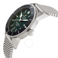 Silver-tone stainless steel case and bracelet. Uni-directional rotating black stainless steel bezel. Green dial with silver-tone hands and index hour markers. Minute markers around the outer rim. Dial Type: Analog. Luminescent hands and markers. Date display at the 6 o'clock position. Breitling Calibre 20 Automatic movement, based upon Tudor MT5612, containing 28 Jewels, bitting at 28800 vph, and has a power reserve of approximately 70 hours. Scratch resistant sapphire crystal. Screw down crown. Solid case back. Round case shape, case size: 46 mm. Fold over clasp with a safety release. Water resistant at 200 meters / 660 feet. Functions: date, hour, minute, second, chronometer. Additional Info: original box, international warranty card, manual (complete accessories). Superocean Heritage Series. Luxury watch style. Watch label: Swiss Made. Breitling Superocean Heritage Automatic Chronometer Green Dial Men's Watch AB2020121L1A1. CASE Case Size: 46 Case Material: Stainless Steel Case Shape: Round Case Back: Solid BAND Band Material: Stainless Steel Band Type: Bracelet Band Color: Silver-tone Clasp: Fold Over with Safety Release DIAL Dial Color: Green Type: Analog Crystal: Scratch Resistant Sapphire Hands: Silver-tone Dial Markers: Index Second Markers: Minute Markers around the outer rim Luminiscence: Hands and Markers Bezel: Uni-directional Rotating Bezel Color: Black Bezel Material: Stainless Steel Crown: Screw Down INFORMATION Brand: Breitling Series: Superocean Heritage Collection Name: Superocean Heritage Gender: Mens Model: AB2020121L1A1 Watch Label: Swiss Made Movement: Automatic Engine: Breitling Calibre 20 Power Reserve: 70 hours FEATURES Water Resistance: 200 meters / 660 feet Calendar: Date display at the 6 o'clock position Functions: Date, Hour, Minute, Second, Chronometer Watch Features: Analog, Chronometer, Stainless Steel ADDITIONAL INFO Watch Style: Luxury Warranty: 2 Year Jomashop Warranty Additional Info: Original Box, Manual (Complete Accessories) Jomashop Sku: BTAB2020121L1A1 Department: Watches Category: Watches