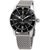 Stainless steel case with a stainless steel mesh bracelet. Uni-directional rotating stainless steel bezel with a black ceramic top ring. Black dial with luminous silver-tone hands and index hour markers. Minute markers around the outer rim. Dial Type: Analog. Luminescent hands and markers. Date display at the 6 o'clock position. Breitling calibre 20 automatic movement with a 70-hour power reserve. Scratch resistant sapphire crystal. Screw down crown. Solid case back. Round case shape. Case size: 42 mm. Case thickness: 14.35 mm. Band width: 22 mm. Fold over slip through clasp. Water resistant at 200 meters / 660 feet. Functions: date, hour, minute, second, chronometer. Luxury watch style. Watch label: Swiss Made. Item Variations: AB201012-BF73-154A. Breitling Superocean Heritage II Automatic Chronometer Black Dial Men's Watch AB2010121B1A1. INFORMATION Brand: Breitling Series: Superocean Heritage Ii Collection Name: Superocean Heritage II Gender: Mens Model: AB2010121B1A1 Watch Label: Swiss Made Movement: Automatic Engine: Breitling Calibre 20 Power Reserve: 70 hours CASE Case Size: 42 mm Case Thickness: 14.35 mm Case Material: Stainless Steel Case Shape: Round Case Back: Solid BAND Band Material: Stainless Steel Mesh Band Type: Bracelet Band Color: Silver-tone Band Width: 22 mm Clasp: Fold Over Slip Through DIAL Dial Color: Black Type: Analog Crystal: Scratch Resistant Sapphire Hands: Luminous Silver-tone Dial Markers: Index Second Markers: Minute Markers around the outer rim Luminiscence: Hands and Markers Bezel: Uni-directional Rotating Bezel Color: Silver-tone Bezel Material: Stainless Steel with a Black Ceramic Top Ring Crown: Screw Down FEATURES Water Resistance: 200 meters / 660 feet Calendar: Date display at the 6 o'clock position Functions: Date, Hour, Minute, Second, Chronometer Watch Features: Stainless Steel, Ceramic, Chronometer, Analog ADDITIONAL INFO Watch Style: Luxury Warranty: 2 Year Jomashop Warranty UPC Code: 842047143681 Jomashop Sku: BTAB2010121B1A1 Item Variation: AB201012-BF73-154A Department: Watches Category: Watches