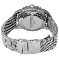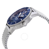 Stainless steel case with a stainless steel mesh bracelet. Uni-directional rotating stainless steel bezel with a blue ceramic ring. Blue dial with luminous silver-tone hands and index hour markers. Minute markers around the outer rim. Dial Type: Analog. Luminescent hands and markers. Date display at the 6 o'clock position. Breitling calibre 20 automatic movement with a 70-hour power reserve. Scratch resistant sapphire crystal. Screw locked crown. Solid case back. Round case shape. Case size: 42 mm. Case thickness: 14.35 mm. Band width: 22 mm. Fold over clasp with a safety release. Water resistant at 200 meters / 660 feet. Functions: date, hour, minute, second, chronometer. Luxury watch style. Watch label: Swiss Made. Item Variations: AB201016-C960-154A. Breitling Superocean Heritage II Automatic Chronometer Blue Dial Men's Watch AB2010161C1A1. INFORMATION Brand: Breitling Series: Superocean Heritage Ii Collection Name: Superocean Heritage II Gender: Mens Model: AB2010161C1A1 Watch Label: Swiss Made Movement: Automatic Engine: Breitling Calibre 20 Power Reserve: 70 hours CASE Case Size: 42 mm Case Thickness: 14.35 mm Case Material: Stainless Steel Case Shape: Round Case Back: Solid BAND Band Material: Stainless Steel Mesh Band Type: Bracelet Band Color: Silver-tone Band Width: 22 mm Clasp: Fold Over with Safety Release DIAL Dial Color: Blue Type: Analog Crystal: Scratch Resistant Sapphire Hands: Luminous Silver-tone Dial Markers: Index Second Markers: Minute Markers around the outer rim Luminiscence: Hands and Markers Bezel: Uni-directional Rotating Bezel Color: Silver-tone Bezel Material: Stainless Steel with a blue Ceramic Ring Crown: Screw Locked FEATURES Water Resistance: 200 meters / 660 feet Calendar: Date display at the 6 o'clock position Functions: Date, Hour, Minute, Second, Chronometer Watch Features: Stainless Steel, Ceramic, Chronometer, Analog ADDITIONAL INFO Watch Style: Luxury Warranty: 2 Year Jomashop Warranty UPC Code: 842047145777 Jomashop Sku: BTAB2010161C1A1 Item Variation: AB201016-C960-154A Department: Watches Category: Watches