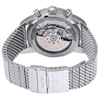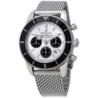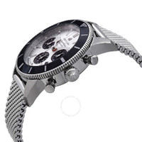 Stainless steel case with a stainless steel mesh bracelet. Uni-directional rotating stainless steel bezel with a black ceramic ring. Silver dial with luminous silver-tone arrow-shaped hands and index hour markers. Minute markers around the outer rim. Dial Type: Analog. Luminescent hands and markers. Date display between the 4 and 5 o'clock positions. Chronograph - three black sub-dials displaying: 60 second, 30 minute and 12 hour. Breitling calibre 01 automatic movement with a 70-hour power reserve. Scratch resistant sapphire crystal. Screw locked crown. Transparent case back. Round case shape. Case size: 44 mm. Case thickness: 15.50 mm. Band width: 22 mm. Fold over clasp with a safety release. Water resistant at 200 meters / 660 feet. Functions: chronograph, date, hour, minute, second, chronometer. Luxury watch style. Watch label: Swiss Made. Item Variations: AB016212-G840-154A. Breitling Superocean Heritage II Chronograph Automatic Chronometer Silver Dial Men's Watch AB0162121G1A1. GENERAL Box Type: Original Box CASE Case Size: 44 Case Thickness: 15.50 mm Case Material: Stainless Steel Case Shape: Round Case Back: Transparent BAND Band Material: Stainless Steel Mesh Band Type: Bracelet Band Color: Silver-tone Band Width: 22 mm Clasp: Fold Over with Safety Release DIAL Dial Color: Silver Type: Analog Crystal: Scratch Resistant Sapphire Hands: Luminous Silver-tone Arrow-shaped Dial Markers: Index Second Markers: Minute Markers around the outer rim Sub Dials: Three - 60 Second, 30 Minute and 12 Hour Luminiscence: Hands and Markers Bezel: Uni-directional Rotating Bezel Color: Silver-tone Bezel Material: Stainless Steel with a Black Ceramic Ring Crown: Screw Locked INFORMATION Brand: Breitling Series: Superocean Heritage Collection Name: Superocean Heritage II Gender: Mens Model: AB0162121G1A1 Watch Label: Swiss Made Movement: Automatic Engine: Breitling Calibre 01 Power Reserve: 70 hours FEATURES Water Resistance: 200 meters / 660 feet Calendar: Date display between 4 and 5 o'clock position Functions: Chronograph, Date, Hour, Minute, Second, Chronometer Watch Features: Analog, Chronometer, Ceramic, Stainless Steel, Chronograph ADDITIONAL INFO Watch Style: Luxury Warranty: 2 Year Jomashop Warranty Jomashop Sku: BTAB0162121G1A1 Item Variation: AB016212-G840-154A Department: Watches Category: Watches