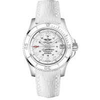 Silver-tone stainless steel case with a white sahara leather strap. Uni-directional rotating white rubber molded bezel. White dial with silver-tone hands and Arabic numeral hour markers. Minute markers around the outer rim. Dial Type: Analog. Luminescent hands and markers. Date display at the 3 o'clock position. Breitling Calibre 17 Automatic movement, based upon ETA 2824-2, containing 25 Jewels, bitting at 28800 vph, and has a power reserve of approximately 42 hours. Scratch resistant sapphire crystal. Solid case back. Round case shape, case size: 36 mm, case thickness: 11.25 mm. Tang clasp. Water resistant at 200 meters / 660 feet. Functions: date, hour, minute, second. Superocean II 36 Series. Dress watch style. Watch label: Swiss Made. Breitling Superocean II 36 Automatic White Dial Men's Watch A17312D2/A775.236X.A16BA.1. CASE Case Size: 36 Case Thickness: 11.25 mm Case Material: Stainless Steel Case Shape: Round Case Back: Solid BAND Band Material: Sahara Leather Band Type: Strap Band Color: White Clasp: Tang DIAL Dial Color: White Type: Analog Crystal: Scratch Resistant Sapphire Hands: Silver-tone Dial Markers: Arabic Numeral Second Markers: Minute Markers around the outer rim Luminiscence: Hands and Markers Bezel: Uni-directional Rotating Bezel Color: White Bezel Material: Rubber Molded INFORMATION Brand: Breitling Series: Superocean Ii 36 Collection Name: Superocean II 36 Gender: Mens Model: A17312D2/A775.236X.A16BA.1 Watch Label: Swiss Made Movement: Automatic Engine: Breitling Calibre 17 Power Reserve: 40 hours FEATURES Water Resistance: 200 meters / 660 feet Calendar: Date display at the 3 o'clock position Functions: Date, Hour, Minute, Second Watch Features: Analog, Leather, Rubber, Stainless Steel ADDITIONAL INFO Watch Style: Dress Warranty: 2 Year Jomashop Warranty Jomashop Sku: BTA17312D2-A775WSLT Department: Watches Category: Watches