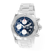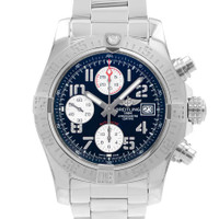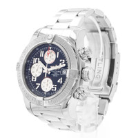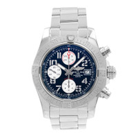 Silver-tone stainless steel case and bracelet. Uni-directional rotating silver-tone stainless steel bezel. Black dial with silver-tone hands and Arabic numeral hour markers. Minute markers around the outer rim. Dial Type: Analog. Luminescent hands and markers. Date display at the 3 o'clock position. Chronograph - three sub-dials displaying: 60 second, 30 minute and 12 hour. Breitling Calibre 13 Automatic movement, based upon ETA Valjoux 7750, containing 25 Jewels, bitting at 28800 vph, and has a power reserve of approximately 42 hours. Scratch resistant sapphire crystal. Screw down crown. Solid case back. Round case shape, case size: 43 mm. Fold over clasp with a safety release. Water resistant at 300 meters / 1000 feet. Functions: chronograph, date, hour, minute, second, chronometer. Avenger II Series. Dive watch style. Watch label: Swiss Made. Pre-owned Breitling Avenger II Chronograph Automatic Chronometer Black Dial Men's Watch A13381. GENERAL Year: 2019 Comments: This Breitling Avenger II, reference number A13381, has a manufacturer year of 2019. Box not included, Papers Included . This watch has a 43mm Steel Case with Steel bezel, Black Arabic numerals dial and Steel bracelet with Fold clasp. The Automatic movement has Chronograph function. The wrist measures 7.5 inches or 19.05 centimeters. The condition is Very Good The watch listed is in stock and the pictures shown are of the actual watch for sale. All of our watches have been thoroughly checked by Preowned Item Condition: Very Good CASE Case Material: Stainless Steel Case Shape: Round Case Back: Solid BAND Band Material: Stainless Steel Band Type: Bracelet Band Color: Silver-tone Clasp: Fold Over with Safety Release DIAL Dial Color: Black Type: Analog Crystal: Scratch Resistant Sapphire Hands: Silver-tone Dial Markers: Arabic Numeral Second Markers: Minute Markers around the outer rim Sub Dials: Three - 60 Second, 30 Minute and 12 Hour Luminiscence: Hands and Markers Bezel: Uni-directional Rotating Bezel Color: Silver-tone Bezel Material: Stainless Steel Crown: Screw Down INFORMATION Brand: Breitling Series: Avenger Collection Name: Avenger II Gender: Mens Model: A13381 Watch Label: Swiss Made Movement: Automatic Engine: Breitling Calibre 13 Power Reserve: 42 hours FEATURES Water Resistance: 300 meters / 1000 feet Calendar: Date display at the 3 o'clock position Functions: Chronograph, Date, Hour, Minute, Second, Chronometer Watch Features: Analog, Chronometer, Stainless Steel, Chronograph ADDITIONAL INFO Watch Style: Dive Warranty: 1 Year Jomashop Warranty Jomashop Sku: PRE-P-BT103794 Department: Watches Category: Watches