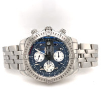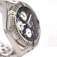 Silver-tone stainless steel case and bracelet. Uni-directional rotating silver-tone stainless steel bezel. Grey dial with silver-tone hands and Arabic numeral hour markers. Minute markers around the outer rim. Dial Type: Analog. Luminescent hands and markers. Date display at the 3 o'clock position. Chronograph - three sub-dials displaying: 60 second, 30 minute and 12 hour. Breitling Calibre 13 Automatic movement, based upon ETA Valjoux 7750, containing 25 Jewels, bitting at 28800 vph, and has a power reserve of approximately 42 hours. Scratch resistant sapphire crystal. Screw down crown. Solid case back. Round case shape, case size: 43 mm, case thickness: 17 mm. Band width: 20 mm. Fold over clasp with a safety release. Water resistant at 300 meters / 1000 feet. Functions: chronograph, date, hour, minute, second, chronometer. Chronomat Evolution Series. Luxury watch style. Watch label: Swiss Made. Pre-owned Breitling Chronomat Evolution Chronograph Automatic Chronometer Grey Dial Men's Watch A1335611C647. GENERAL Collection Name: Chronomat Evolution INFORMATION Brand: Breitling Series: Chronomat Evolution Model: A1335611C647 Gender: Mens Watch Label: Swiss Made Movement: Automatic Engine: Breitling Calibre 13 Power Reserve: 42 hours CONDITION INFORMATION Box: Yes Preowned Item Condition: Excellent Papers: Yes CASE Case Size: 43 mm Case Thickness: 17 mm Case Material: Stainless Steel Case Shape: Round Case Back: Solid DIAL Type: Analog Dial Color: Grey Crystal: Scratch Resistant Sapphire Hands: Silver-tone Second Markers: Minute Markers around the outer rim Dial Markers: Arabic Numeral Sub Dials: Three - 60 Second, 30 Minute and 12 Hour Luminiscence: Hands and Markers Bezel: Uni-directional Rotating Bezel Color: Silver-tone Bezel Material: Stainless Steel Crown: Screw Down BAND Band Type: Bracelet Band Material: Stainless Steel Band Color: Silver-tone Band Width: 20 mm Clasp: Fold Over with Safety Release FEATURES Water Resistance: 300 meters / 1000 feet Calendar: Date display at the 3 o'clock position Functions: Chronograph, Date, Hour, Minute, Second, Chronometer Watch Features: Chronograph, Stainless Steel, Chronometer, Analog ADDITIONAL INFO Watch Style: Luxury Warranty: 1 Year Jomashop Warranty Jomashop Sku: PRE-P-BT54987 Department: Watches Category: Watches
