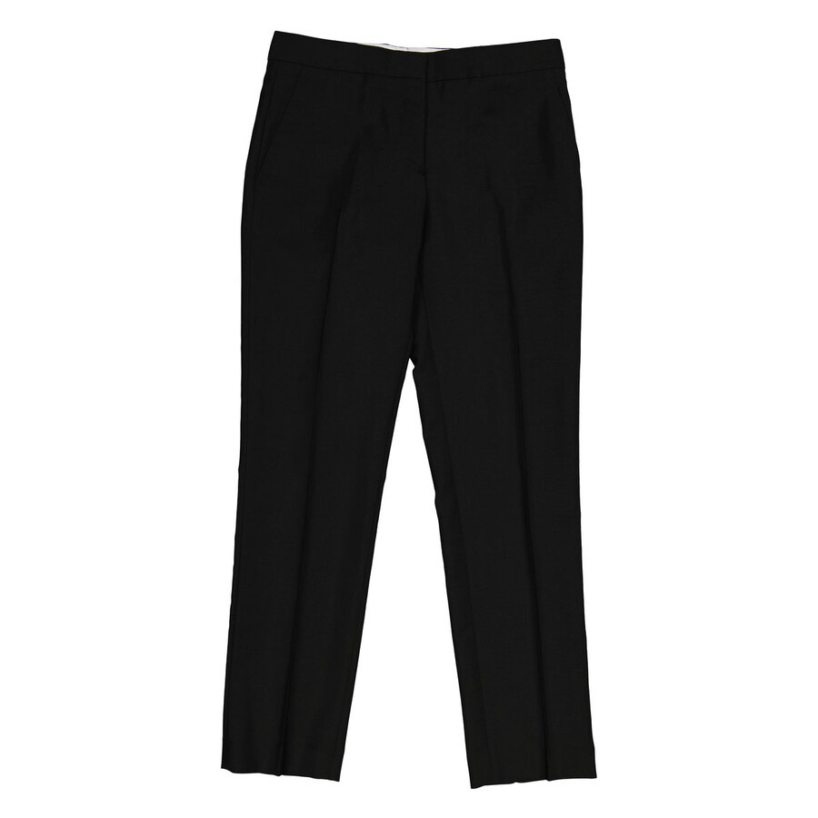 Burberry Ladies Bottoms. Fashion category: Pants & Leggings. SKU: 8041641. Color: Black. Burberry Aimie Mohair Wool Tailored Trousers In Black. The Aimie Tailored trousers cut to a slim fit in Italian-woven mohair wool, accented with sharp pleats. It features a concealed hook-and-bar, button and zip fly closure, back button-through welt pockets and side slip pockets. Outer: 60% mohair, 40% wool. GENERAL Color: Black INFORMATION Brand: Burberry Gender: Womens Model: 8041641 DETAILS Category: Bottoms Apparel Type: Pants & Leggings Material: Mohair, Wool ADDITIONAL INFO Jomashop Sku: -8041641N Department: Apparel