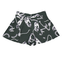 Burberry Ladies Bottoms. Fashion category: Shorts. SKU: 8087917. Color: Silver/Green. Burberry All-Over Graphic Print Pleated Shorts. These shorts feature an elasticated waistband, an all-over graphic print, a pleated design, a concealed side zip fastening, a curved hem, a thigh-length cut, and two side slit pockets. 60% Polyester, 40% Viscose. Made in Italy. GENERAL Brand Type: Designer Color: Silver/Green INFORMATION Brand: Burberry Gender: Womens Model: 8087917 DETAILS Category: Bottoms Apparel Type: Shorts Material: Polyester, Viscose ADDITIONAL INFO Jomashop Sku: -8087917N Department: Clothing
