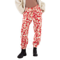 Burberry Ladies Bottoms. SKU: 8082740. Color: Pillar Ip Pattern. Burberry Ladies All Over Rose Print Wool Jogging Pants. These wool jogging pants features an allover rose print, an elasticated drawstring waistband, slip pockets at the sides, wide legs, and elasticated cuffs for a cozy and stylish look. Material: 100% wool Trims: 100% wool; 88% wool, 11% polyamide, 1% elastane. Made In Italy. GENERAL Brand Type: Designer Color: Pillar Ip Pattern INFORMATION Brand: Burberry Gender: Womens Model: 8082740 DETAILS Category: Bottoms Apparel Type: Pants & Leggings ADDITIONAL INFO Jomashop Sku: -8082740N Department: Clothing