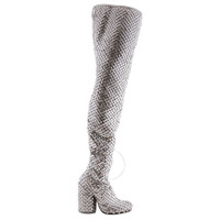 Burberry Ladies Boots. SKU: 8060592. Color: Silver/Crystal. The Burberry Anita Over-the-Knee Boots in Silver/Crystal are a bold, glamorous statement piece. Crafted with a sleek over-the-knee design, these boots are adorned with shimmering crystals that catch the light beautifully. The silver hue adds a futuristic, high-fashion edge, making them a standout choice for elevating any outfit. Perfect for those seeking a dramatic, luxurious look. 100% Sheep Grain Leather. Made in Italy. Please visit the brand website for sizing information. GENERAL Size Info: 6 Shoe Size: Shoe Size: 6 INFORMATION Brand: Burberry Model: 8060592 Gender: Womens DETAILS Category: Boots Color: Silver/Crystal ADDITIONAL INFO UPC Code: 5045700068535 Jomashop Sku: Z-V63N4 Department: Shoes