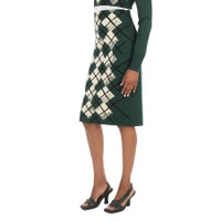 Burberry Ladies Bottoms. Fashion category: Skirts. SKU: 8081136. Burberry Argyle Intarsia Knitted Midi Skirt. This skirt features an argyle intarsia knit, a high-waisted design, an elasticated waistband, a rear slit, a straight hem, and a below-knee length. 100% Cotton. Made in Italy. GENERAL Brand Type: Designer Color: Ivy INFORMATION Brand: Burberry Gender: Womens Model: 8081136 DETAILS Category: Bottoms Apparel Type: Skirts Material: Cotton ADDITIONAL INFO Jomashop Sku: -8081136N Department: Clothing