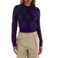 Burberry Ladies Tops. Fashion category: T-Shirts & Henleys. SKU: 8078500. Burberry Argyle-Knit Long Sleeve Cropped Jumper. This jumper features a knitted construction with an argyle intarsia knit, a crew neck, long sleeves, ribbed cuffs and hem, a cropped fit, and a straight hem. 100 % Wool. Made in Italy. GENERAL Brand Type: Designer Color: Royal Ip Pattern INFORMATION Brand: Burberry Gender: Womens Model: 8078500 DETAILS Category: Tops Apparel Type: T-Shirts & Henleys Material: Wool ADDITIONAL INFO Jomashop Sku: -8078500N Department: Clothing