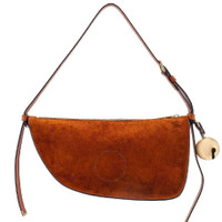 Burberry Ladies Shoulder Bag. SKU: 8075574. Color: Bruciato. Size: W: 32cm × H: 17cm × D: 7cm. Burberry Bell Charm Shield Shoulder Bag. This shoulder bag is crafted from calf suede and features gold-tone hardware, a folded shield shape, a bell charm, an adjustable shoulder strap, a top zip fastening, a main compartment, trimmed and lined with smooth leather. 100% calf leather. Made in Italy. GENERAL Size Info: W: 32 cm × H: 17 cm × D: 7 cm Brand Type: Designer Color: Bruciato INFORMATION Brand: Burberry Gender: Womens Model: 8075574 DETAILS Material: Leather ADDITIONAL INFO UPC Code: 5045704125258 Jomashop Sku: Z-8YF3S Department: Bags Category: Shoulder Bag