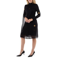 Burberry Ladies Dresses. Fashion category: Cocktail & Party Dresses. SKU: 8047247. Color: Black. Burberry Black Star Motif Gathered Silk Viscose Dress. Crafted from luxurious silk-viscose blend, this elegant turtleneck dress features a long-sleeved design and is adorned with delicate chain star motifs meticulously embroidered onto a sheer jersey overlay. 77% viscose, 23% polyester. GENERAL Color: Black INFORMATION Brand: Burberry Gender: Womens Model: 8047247 DETAILS Category: Dresses Apparel Type: Cocktail & Party Dresses Material: Polyester, Viscose ADDITIONAL INFO Jomashop Sku: -8047247N Department: Apparel