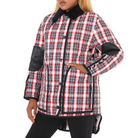 Burberry Bright Red Check Diamond Quilted Tartan Oversized Barn Jacket