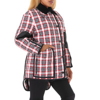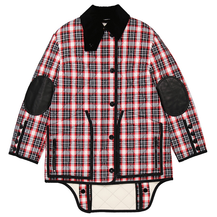 Burberry Ladies Outerwear. Fashion category: Coats & Jackets. SKU: 4566011. Color: Bright Red Check. Burberry Bright Red Check Diamond Quilted Tartan Oversized Barn Jacket. A diamond-quilted barn jacket in yarn dyed tarton nylon, cut to an oversized fit. The design is elevated with a corduroy collar, supple lambskin elbow patches and a stepped hem. GENERAL Color: Bright Red Check INFORMATION Brand: Burberry Gender: Womens Model: 4566011 DETAILS Category: Outerwear Apparel Type: Coats & Jackets ADDITIONAL INFO Jomashop Sku: -4566011N Department: Apparel