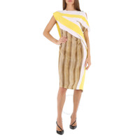 Burberry Bright Straw Graphic-Print Boat Neck Asymmetric Dress