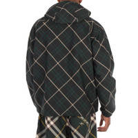Burberry Men's Outerwear. Fashion category: Coats & Jackets. SKU: 8090299. Color: Jungle Ip Check. Burberry Check Hooded Zip-Up Jacket. This jacket features a check print, a drawstring hood with toggle fastening, a front two-way zip fastening, long raglan sleeves, elasticated cuffs, two side zip-fastening pockets, and a straight hem. 100% Polyester. GENERAL Brand Type: Designer Color: Jungle Ip Check INFORMATION Brand: Burberry Gender: Mens Model: 8090299 DETAILS Category: Outerwear Apparel Type: Coats & Jackets Material: Polyester ADDITIONAL INFO Jomashop Sku: -8090299N Department: Clothing