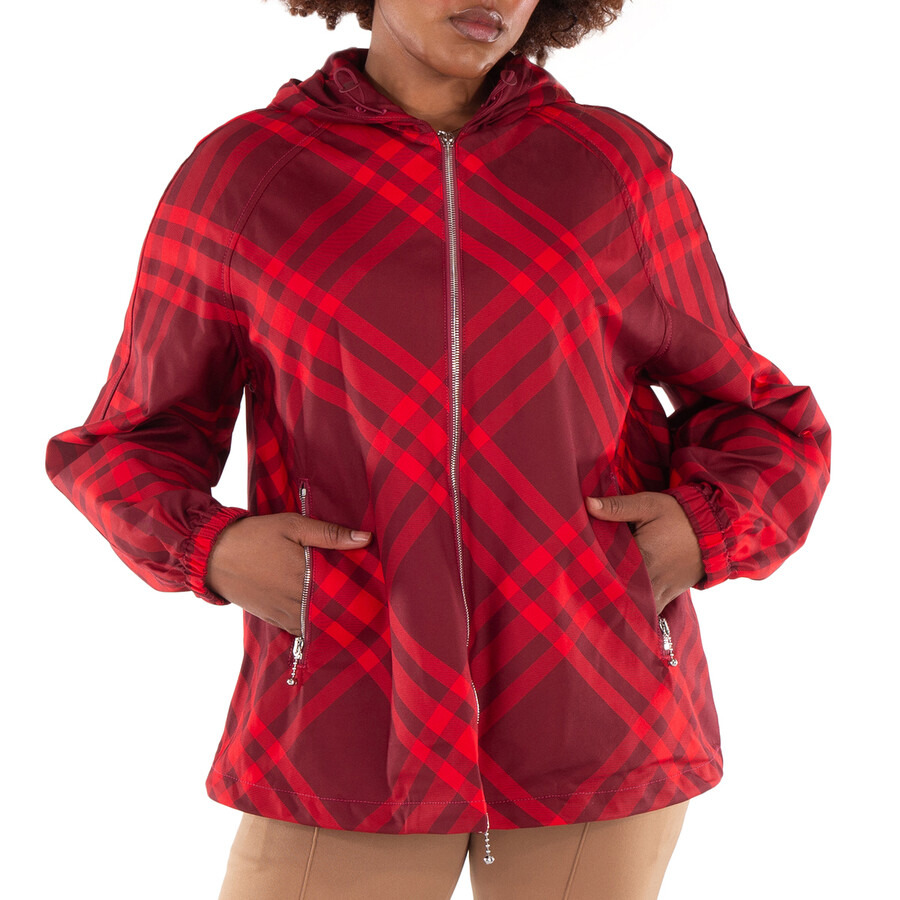 Burberry Ladies Outerwear. Fashion category: Coats & Jackets. SKU: 8079012. Color: Ripple Ip Check. Burberry Check Nylon Hooded Jacket. This Jacket features has long sleeves, elasticated cuffs, front zip closure, a drawstring waist and two side zipped pockets. 100% Polyamide. Made In Bulgaria. GENERAL Brand Type: Designer Color: Ripple Ip Check INFORMATION Brand: Burberry Gender: Womens Model: 8079012 DETAILS Category: Outerwear Apparel Type: Coats & Jackets Material: Polyamide ADDITIONAL INFO Jomashop Sku: -8079012N Department: Clothing